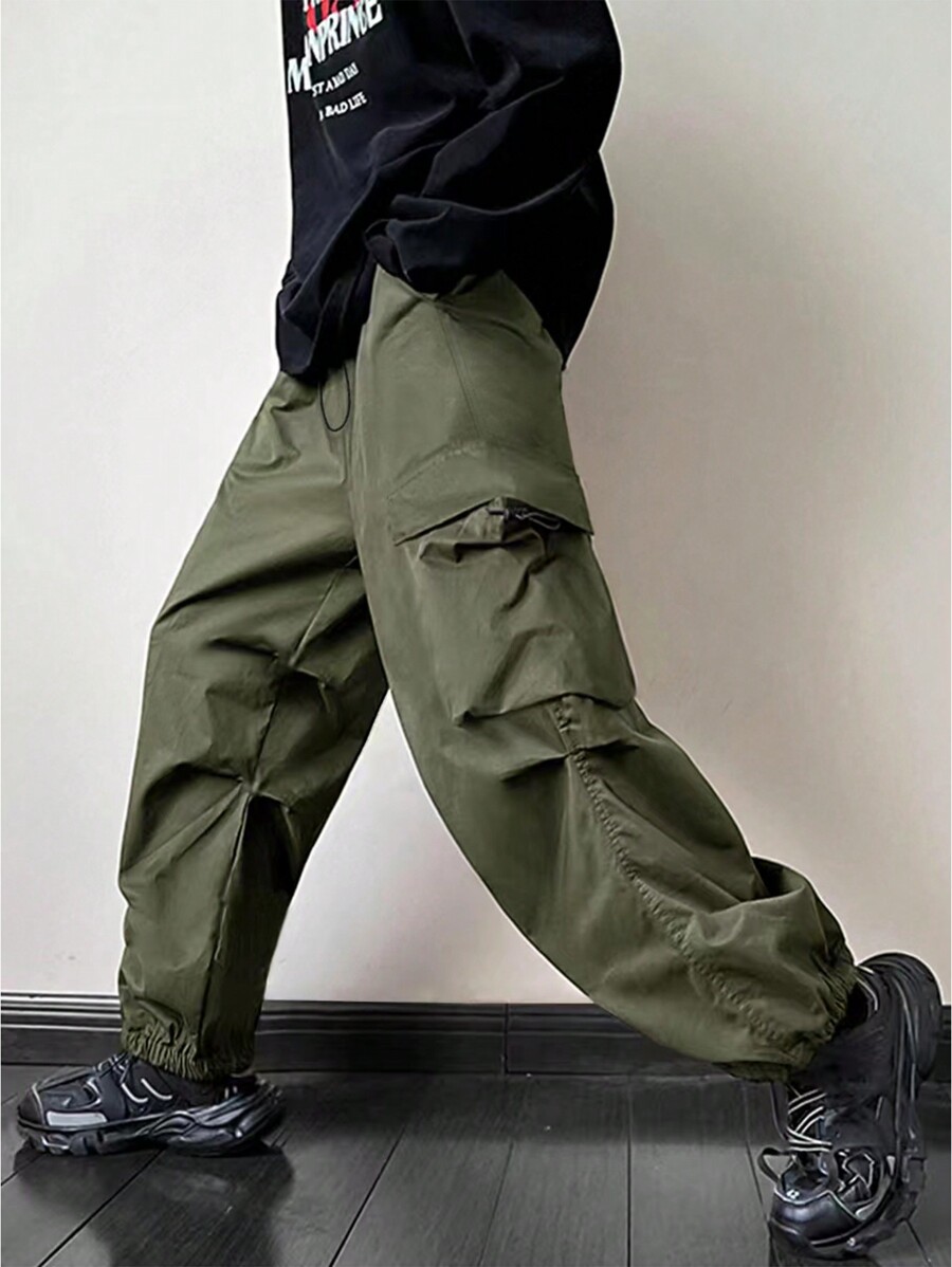 Street Life Pantalones holgados para hombre con bolsillo de solapa en el costado y cintura con cordón ajustable tipo cargo