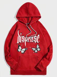 Street Life Hombres Capucha letra y mariposa con estampado con bolsillo de canguro con cordón con forro térmico
