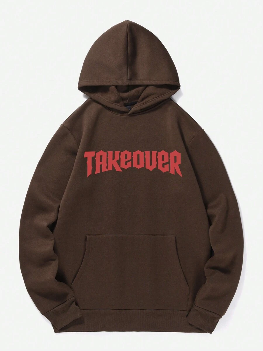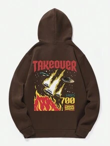 Street Life Hombres Capucha térmica con estampado de letra y dibujos animados con bolsillo de canguro con cordón