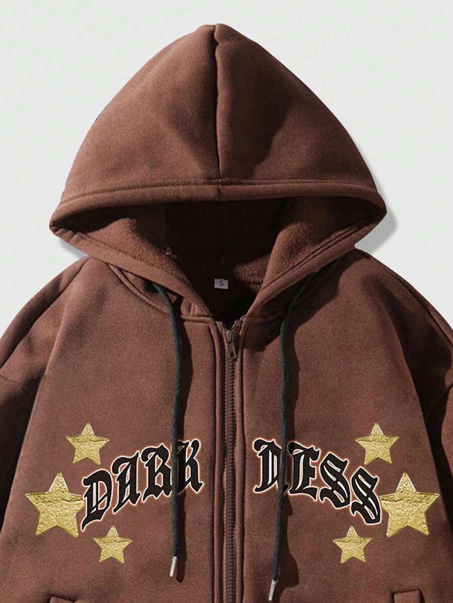 Street Life Hombres Capucha con estampado de letra con cordón con forro térmico