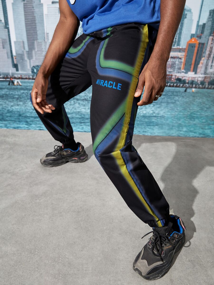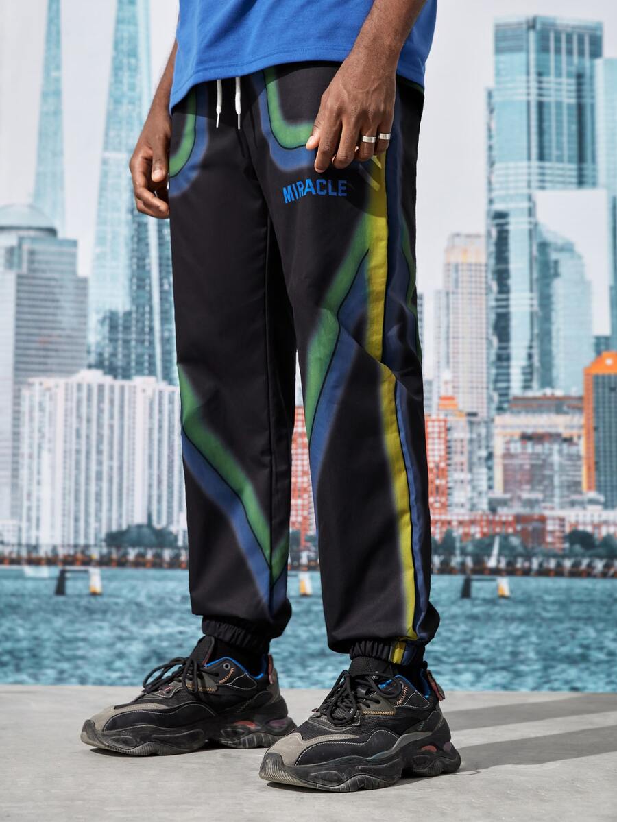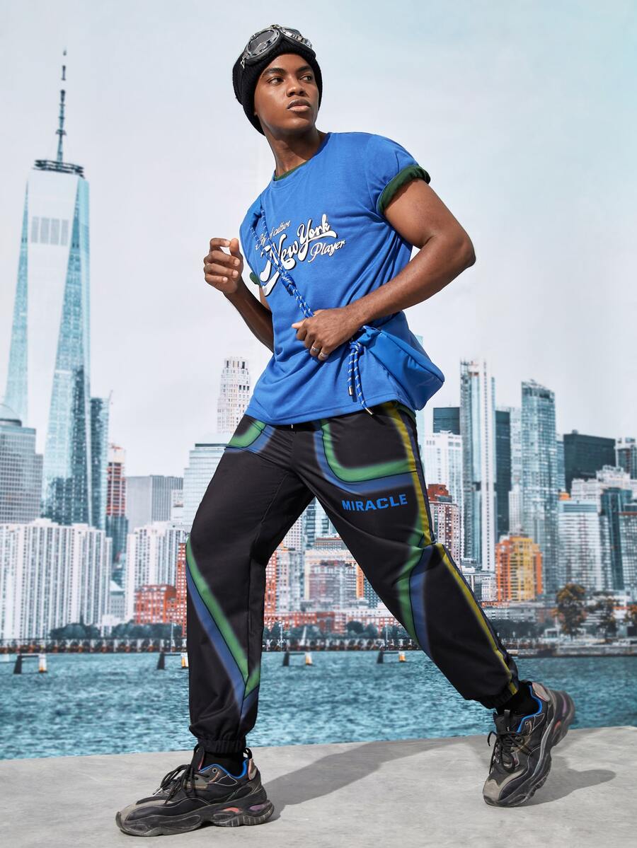 Street Life Hombres Pantalones con estampado de letra de cintura con cordón