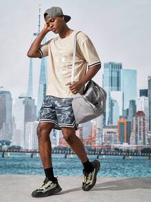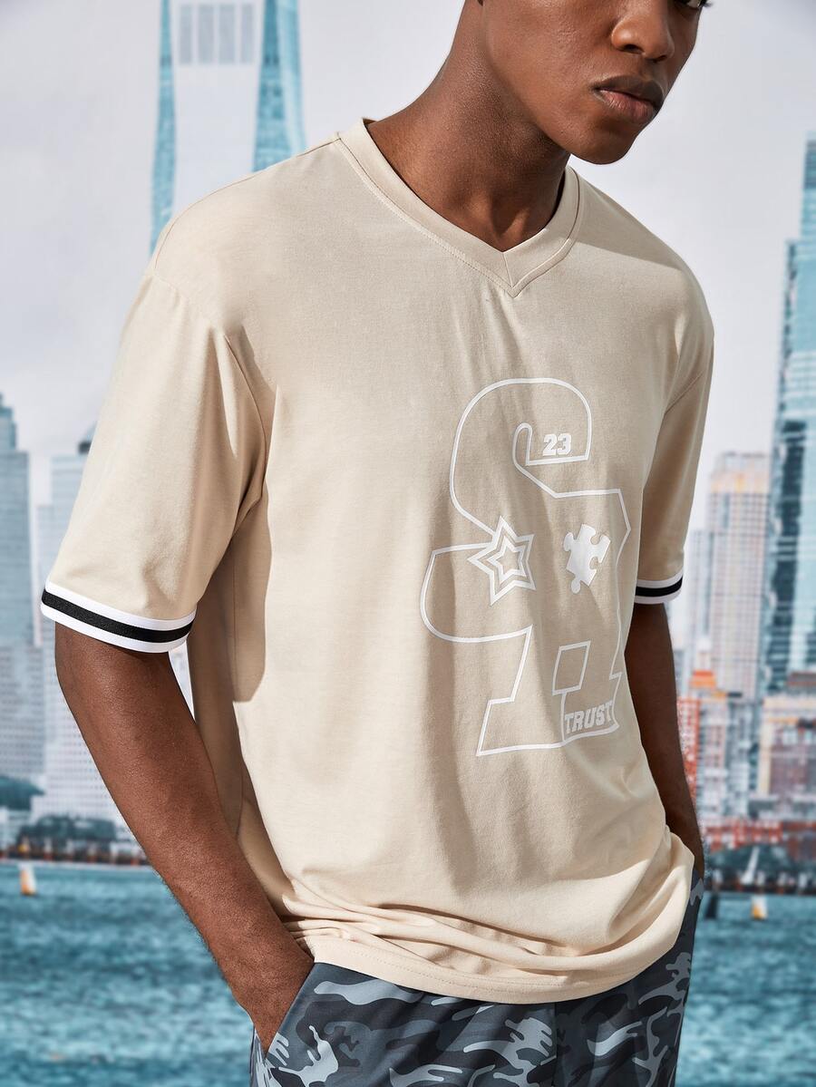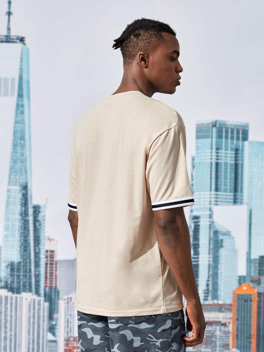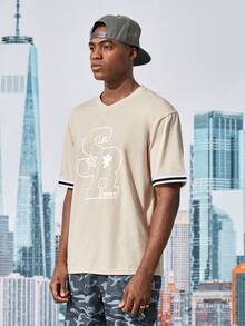 Street Life Hombres Camiseta con estampado de letra ribete de rayas