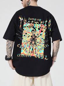 Street Life Camiseta Con Letras Y Estampado De Esqueleto Para Hombres