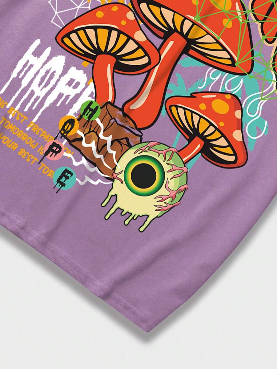 Street Life Playera Gráfica Para Hombre Con Estampado De Hongos Y Letras