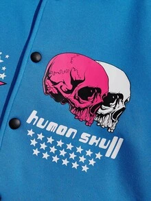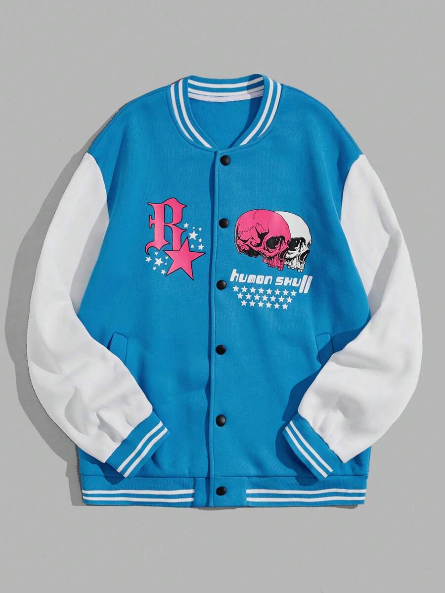 Street Life Hombres Cazadora de universidad con estampado de cráneo y letra de dos tonos