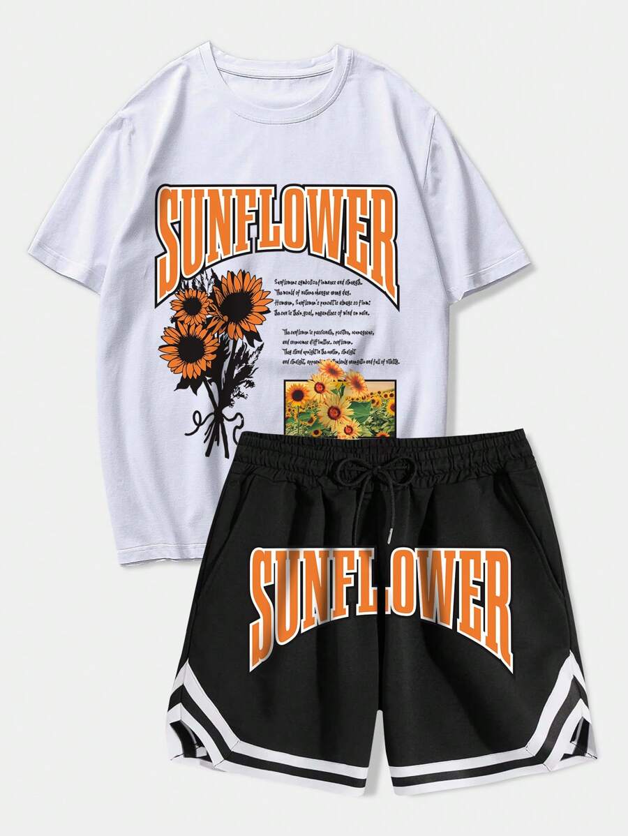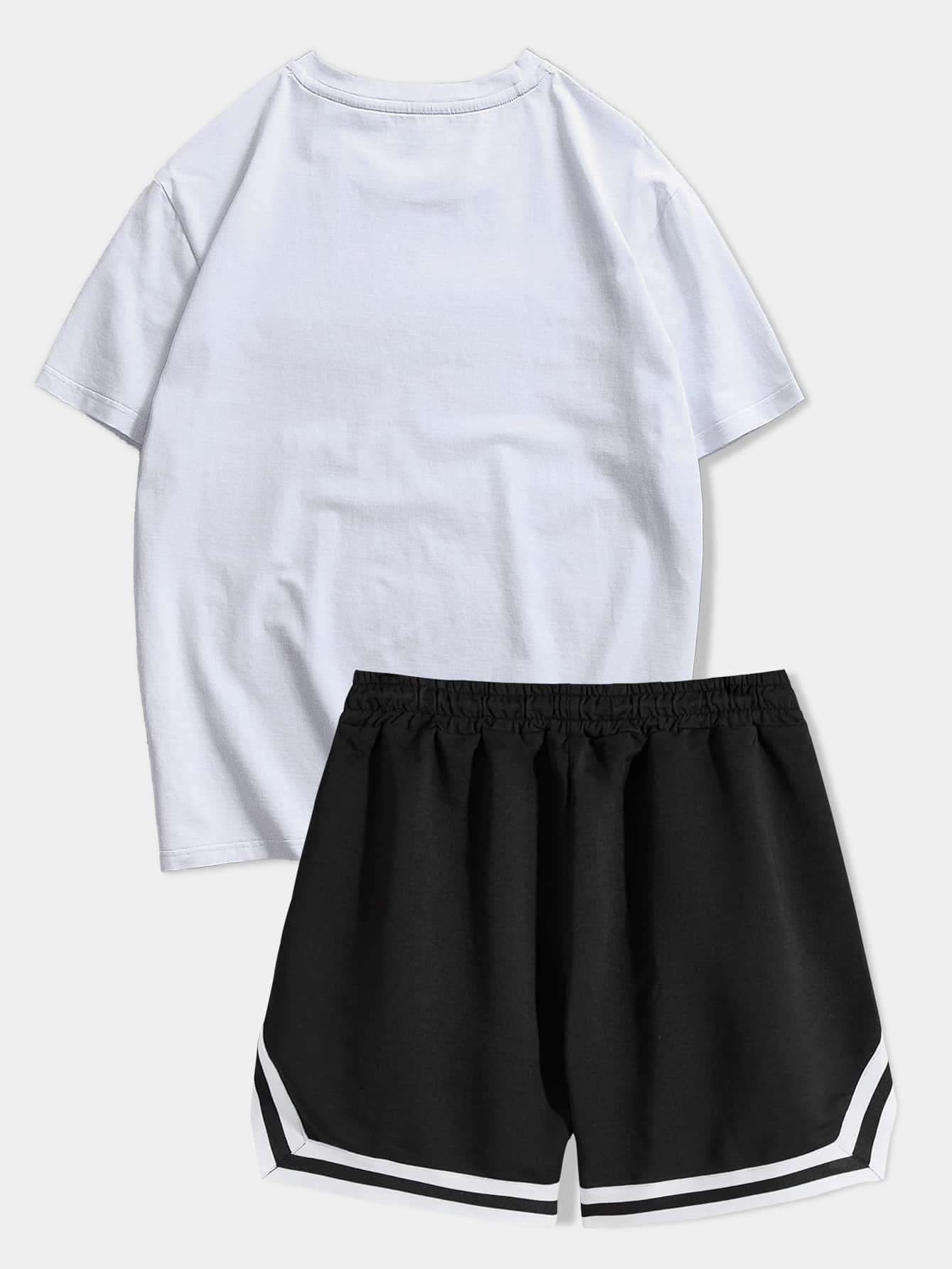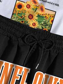 Street Life Hombres con estampado de slogan Camiseta & de cintura con cordón Shorts