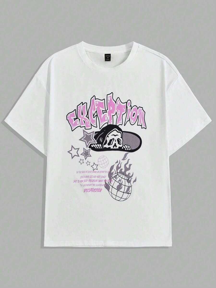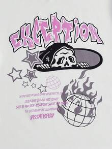 Street Life Hombres Camiseta con slogan con estampado de cráneo y fuego