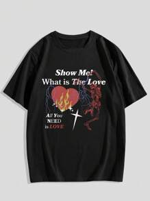 Street Life Hombres Camiseta con slogan de cráneo & con estampado de fuego