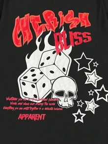 Street Life Hombres Camiseta de hombros caídos con slogan & estampado de cráneo
