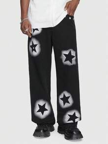 Street Life Hombres Jeans de pierna recta con estampado de estrella