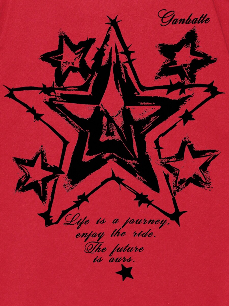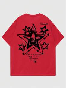 Street Life Camiseta de manga caída con estampado de estrella y eslogan, escuela para hombre