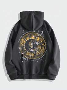 Street Life Hombres Capucha térmica con estampado de sol y luna con bolsillo de canguro con cordón