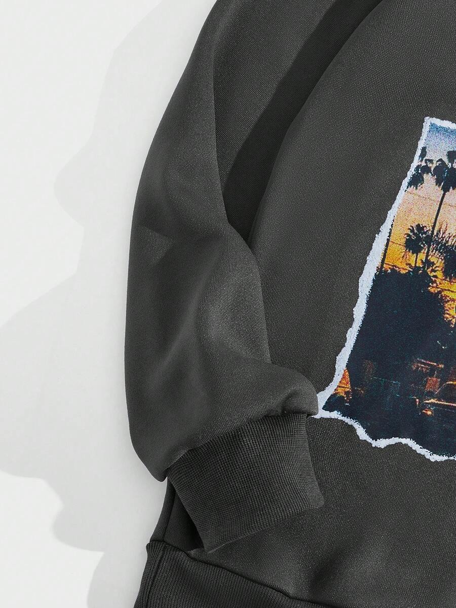 Street Life Hombres Capucha tropical & con estampado de letra con cordón con forro térmico