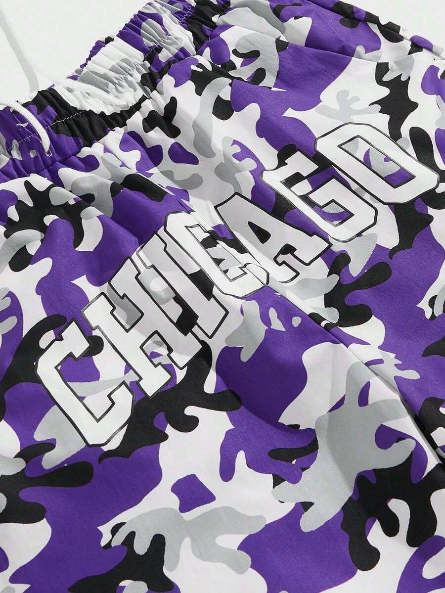 Street Life Pantalones Cortos De Cintura Ajustable, Con Estampado De Camuflaje Y Letras Para Hombre