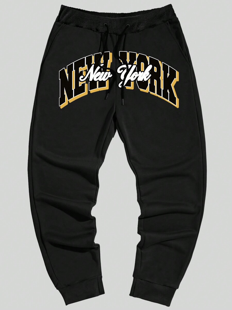 Street Life Conjunto De Sudadera Con Capucha Y Pantalón Para Hombre Con Impresión De Letra Y Oso De Dibujos Animados