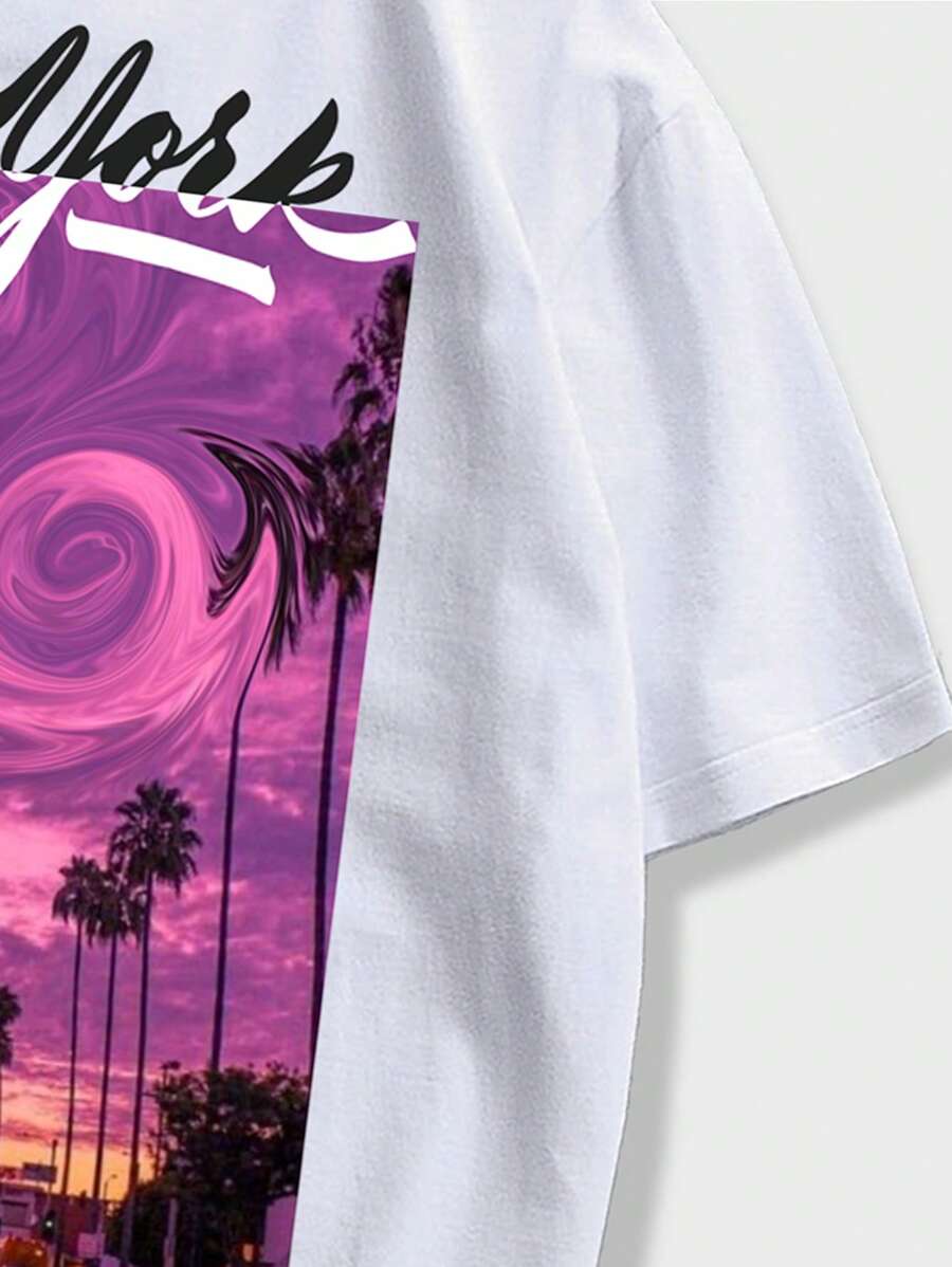 Street Life Camiseta de estilo Y2K con gráfico de letra para hombres, escuela