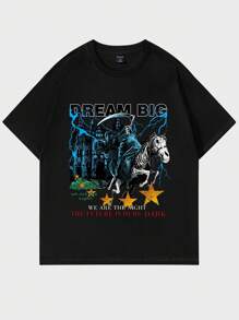 Street Life Camiseta Para Hombres Con Estampado De Lema Y Esqueleto