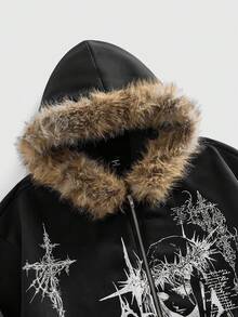Street Life Sudadera con capucha de personaje de anime para hombres con cuello de piel