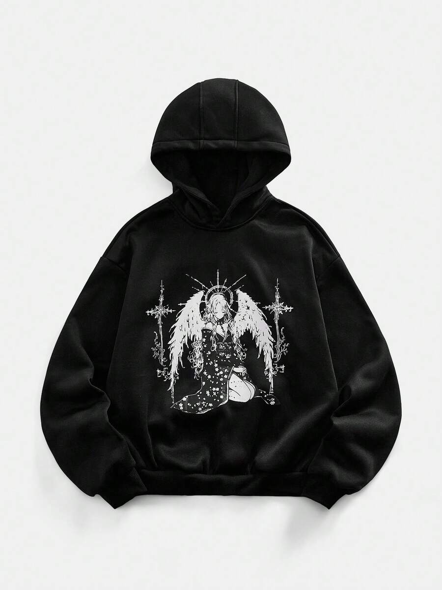 Street Life Sudadera con capucha casual de manga larga con estampado de personaje de anime para hombre
