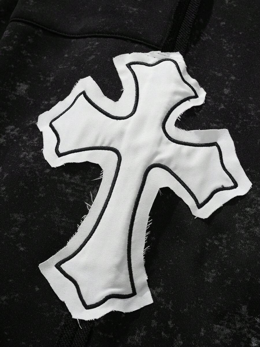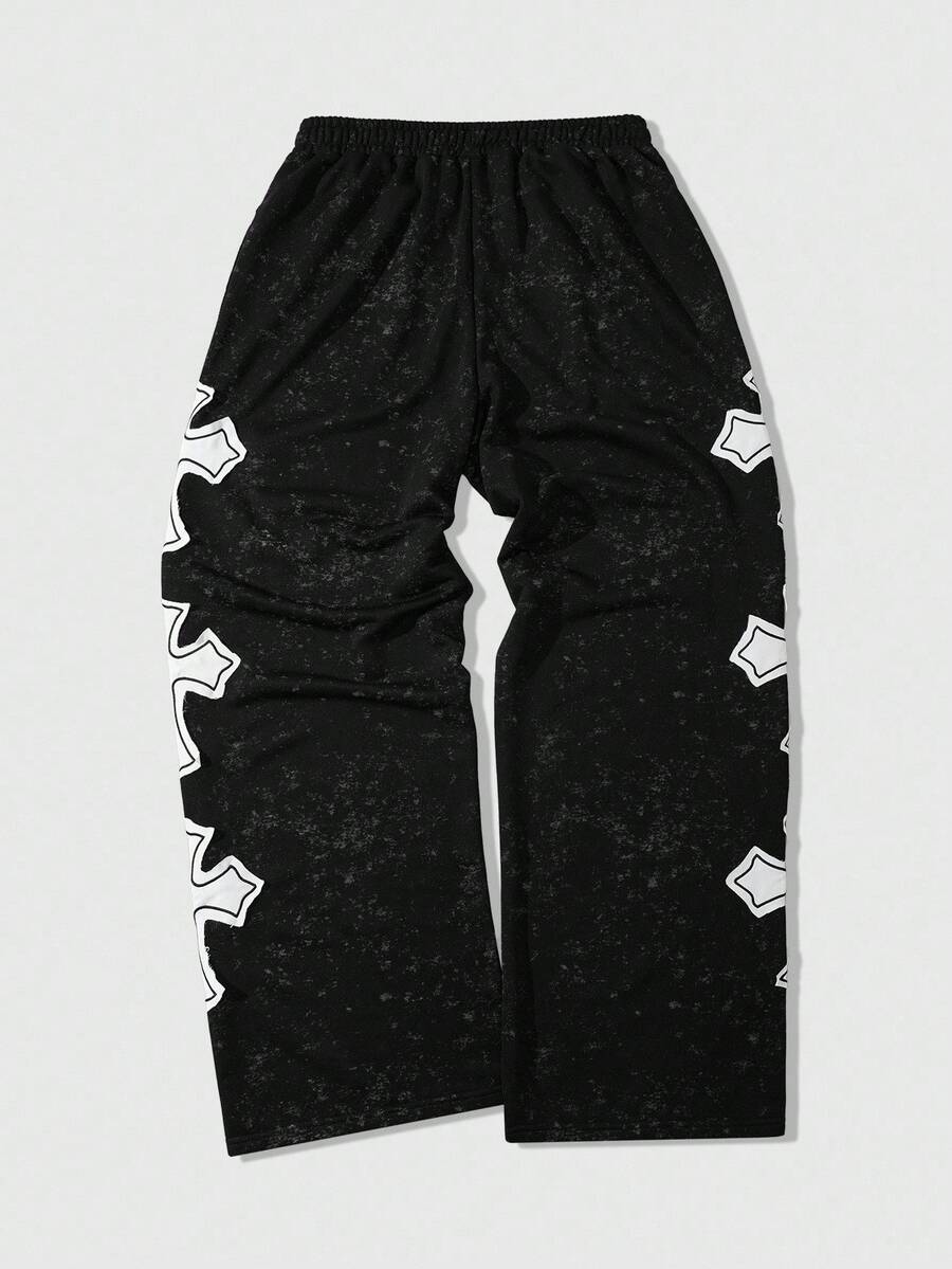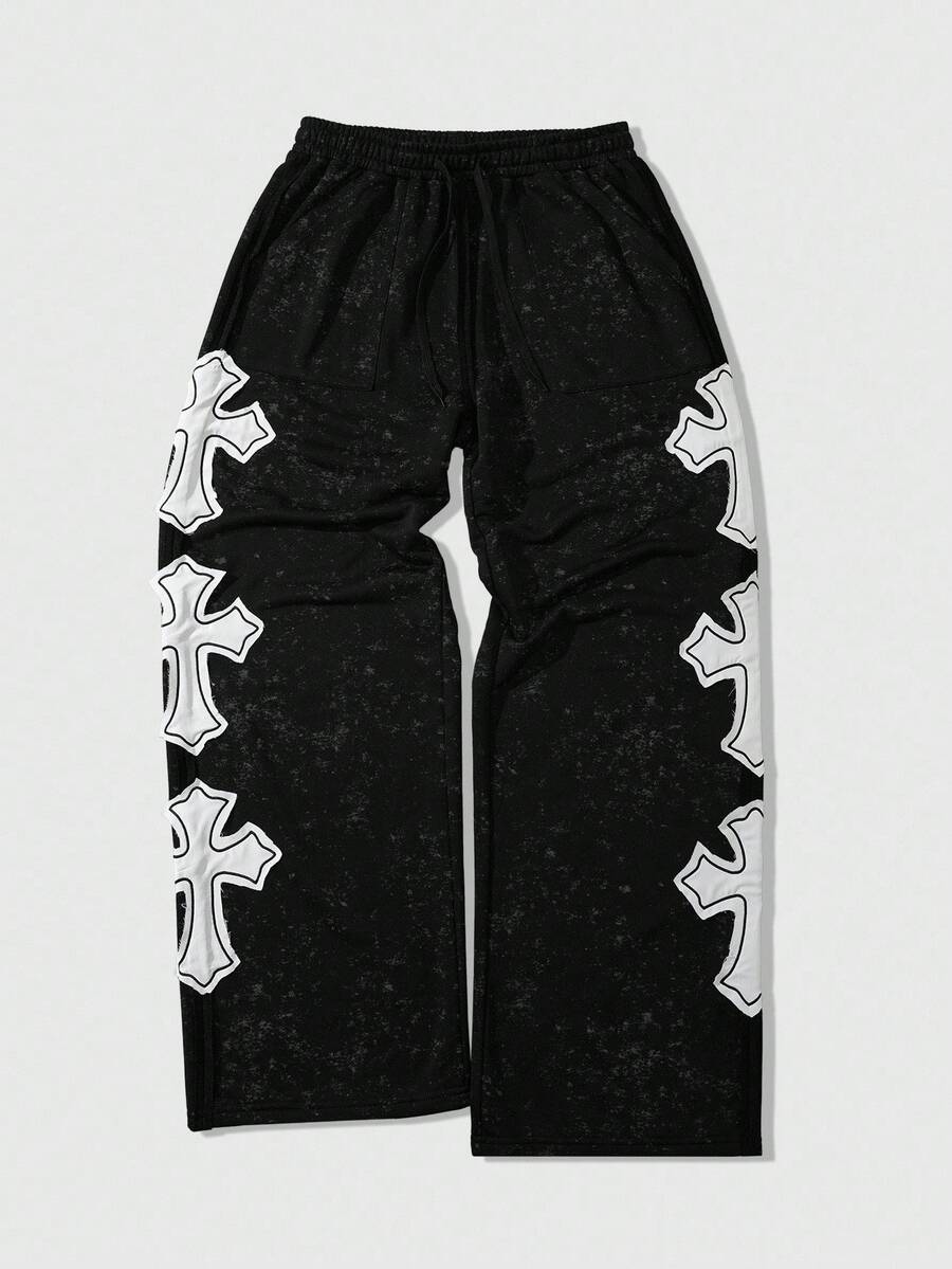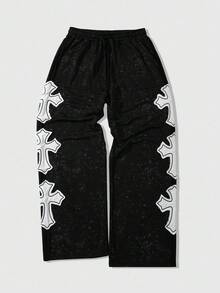 Street Life Pantalones de chándal holgados con cordón de cintura y bordado de cruz para hombre, para otoño/invierno