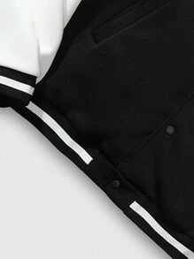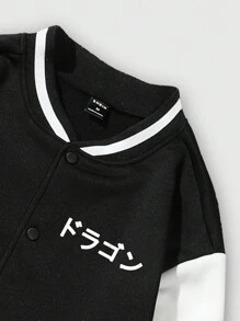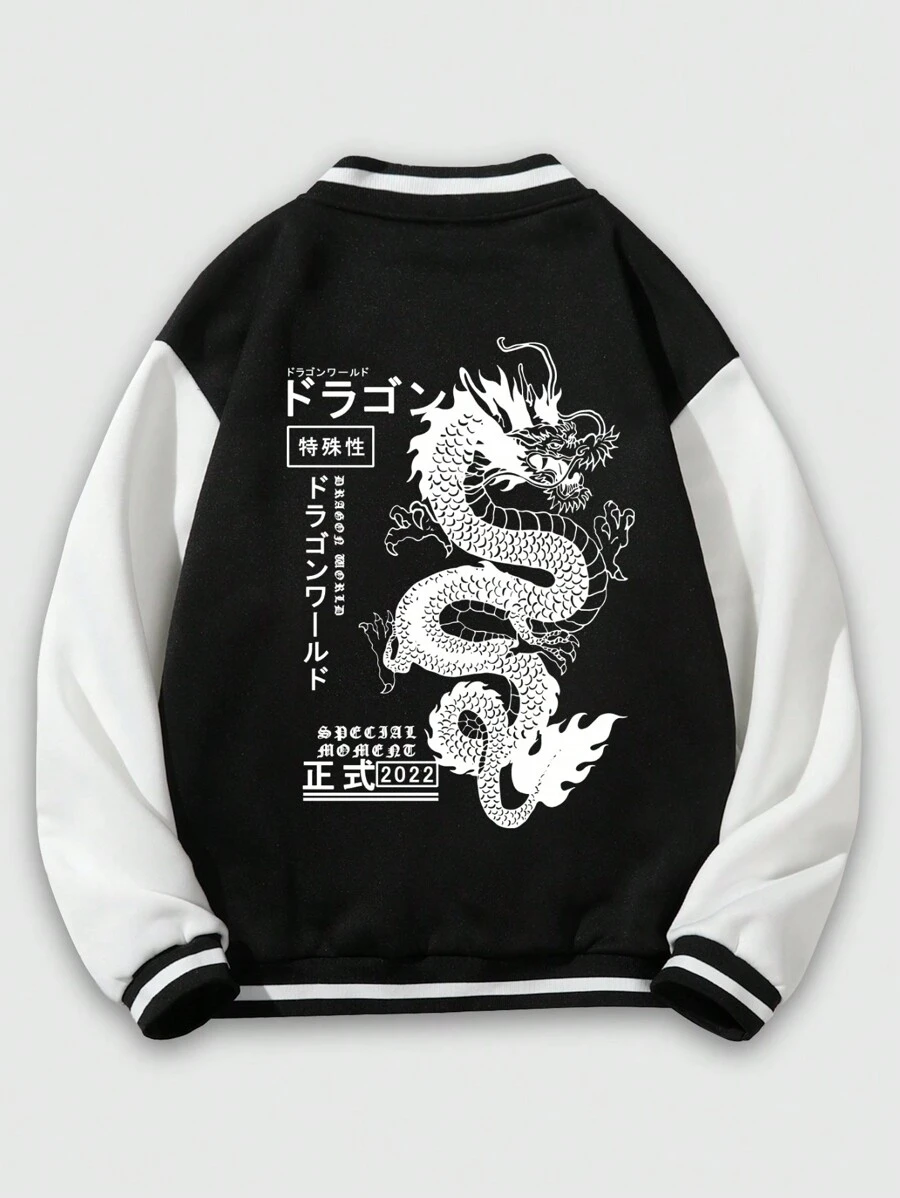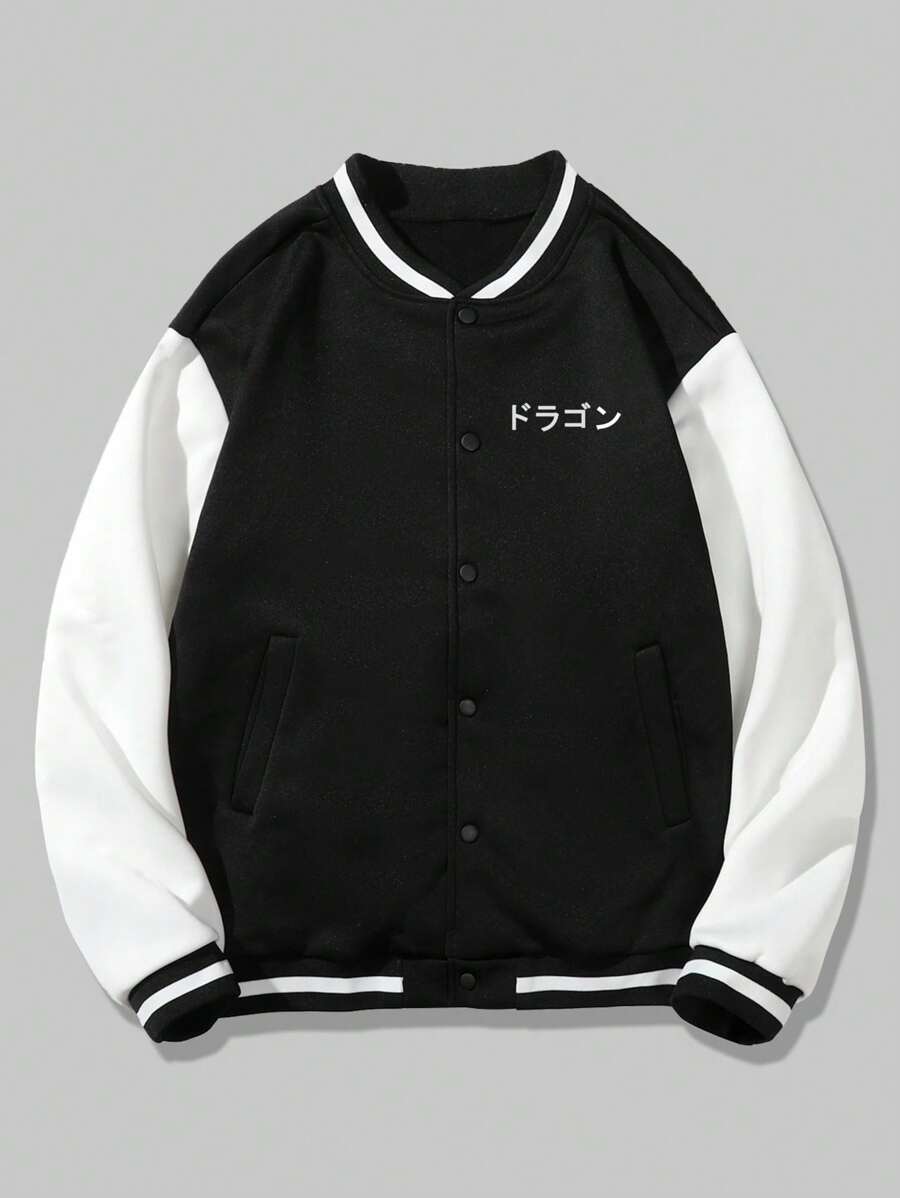 Street Life Chaqueta De Béisbol Para Hombre Con Bloques De Color Blanco Y Negro Con Impresión De Dragón En La Espalda