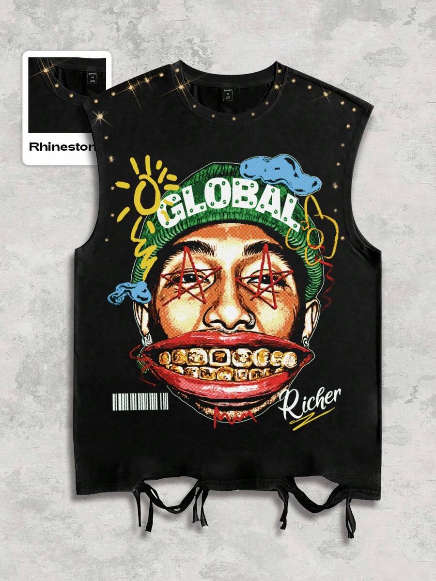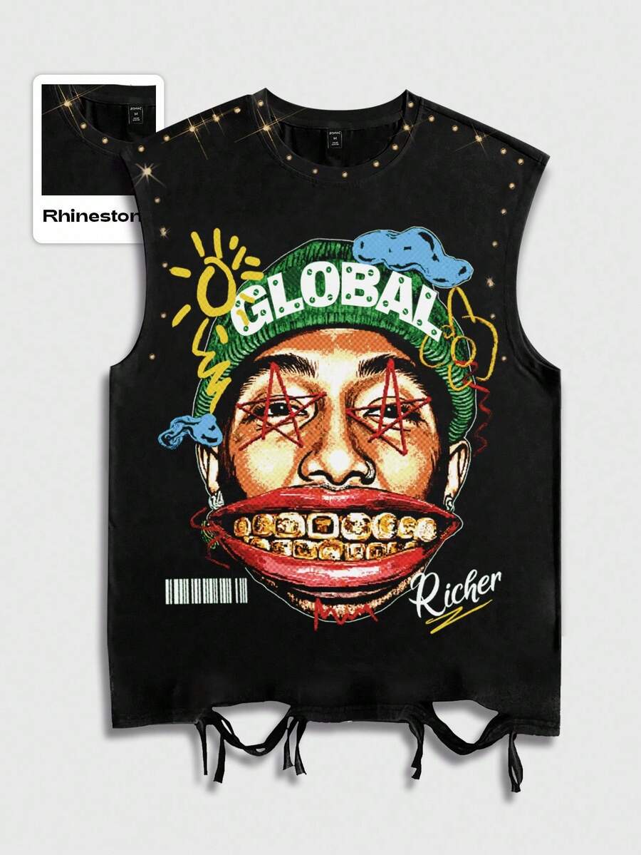 Street Life Camiseta de tirantes con estampado de boca grande y efecto desgastado, estilo de los años 2000 para hombre