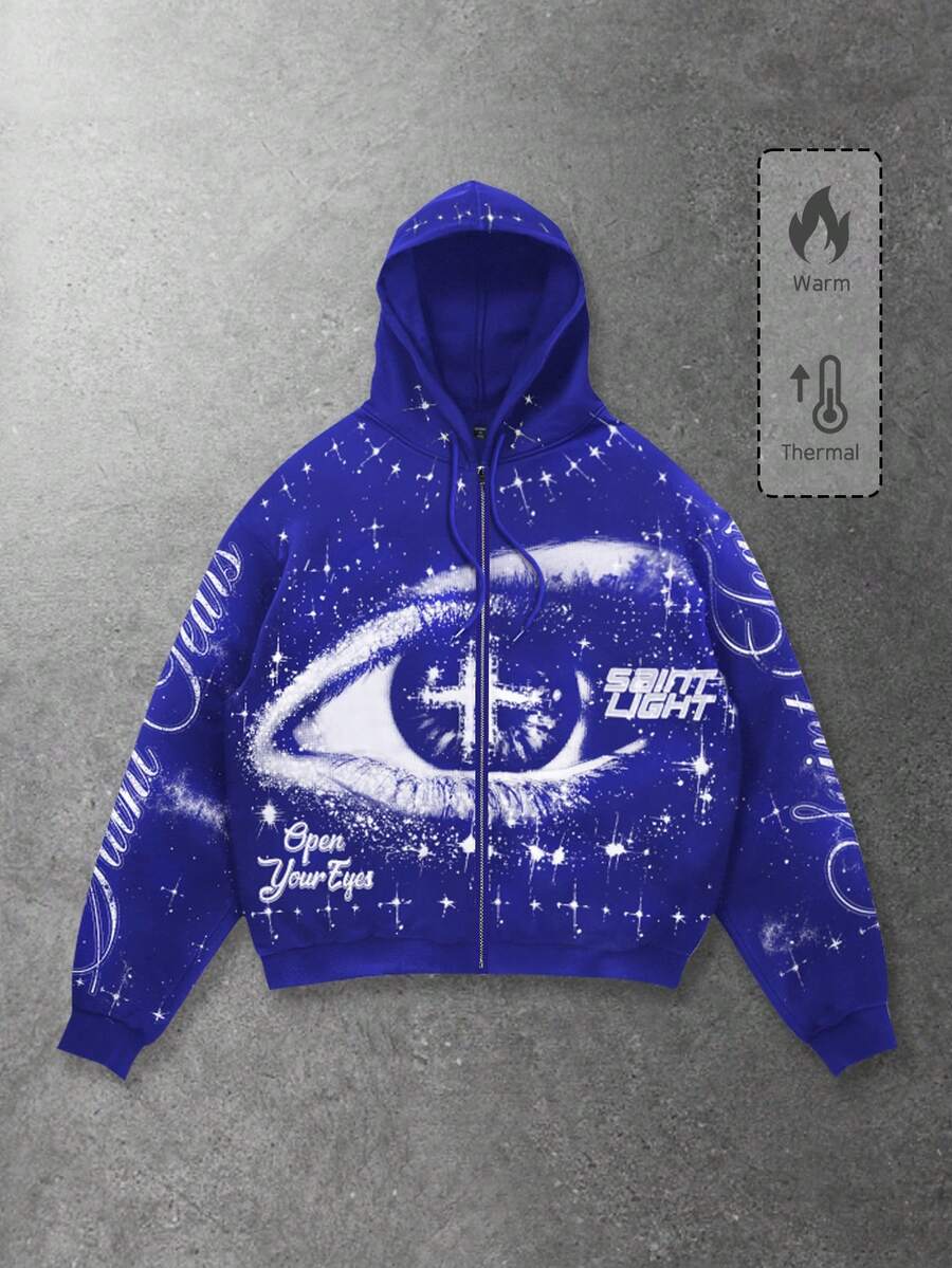 Street Life Sudadera con cremallera casual estampada para hombre, otoño/invierno
