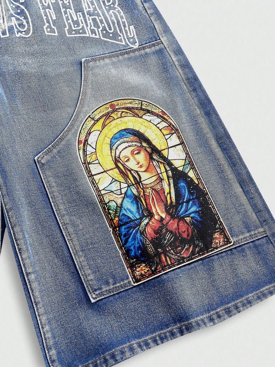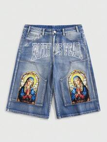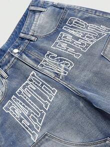 Street Life Pantalones vaqueros de moda casual para hombres con estampado de patrones creativos y presillas para cinturón, para verano