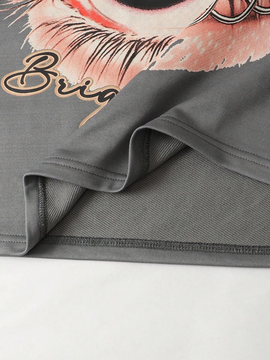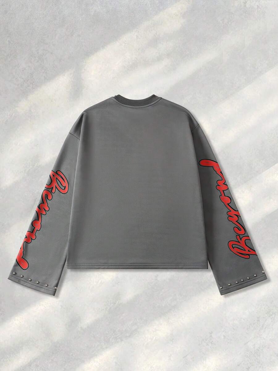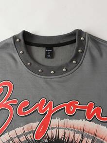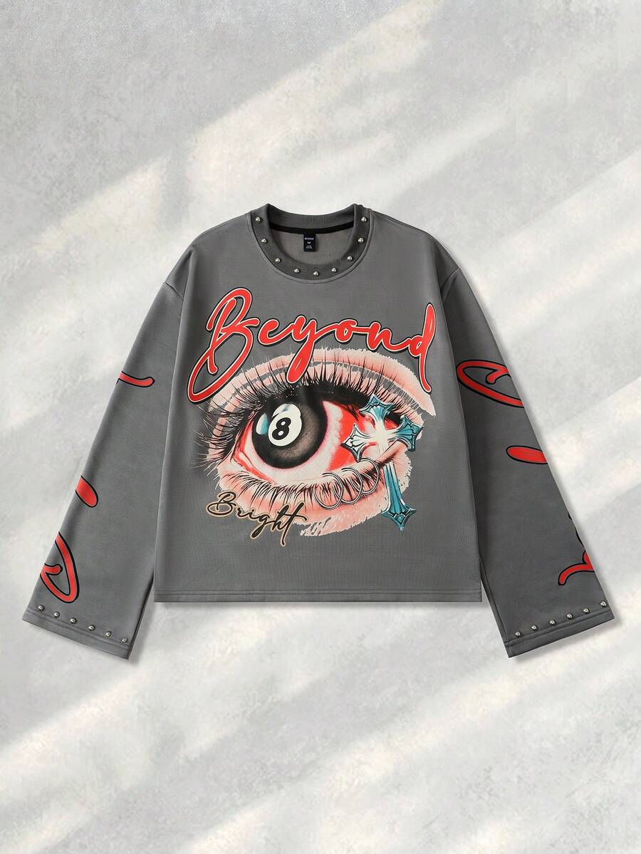 Street Life Sudadera holgada de cuello redondo con estampado de ojos y letras, remaches y mangas acampanadas, estilo casual y callejero, para hombre, primavera/otoño
