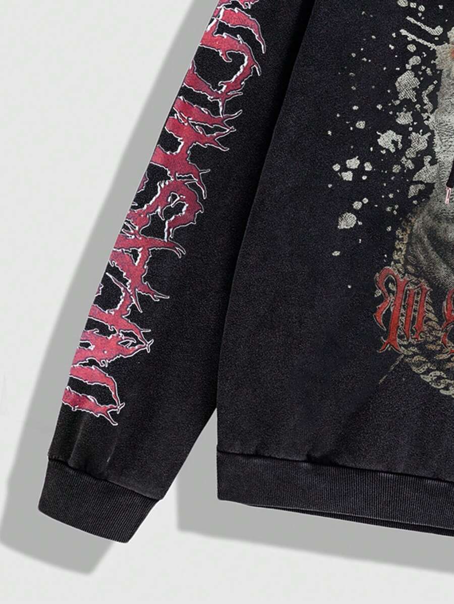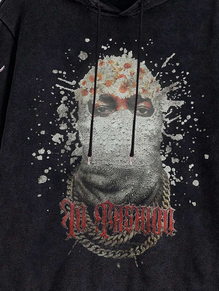 Street Life Sudadera con capucha casual con estampado floral para hombres