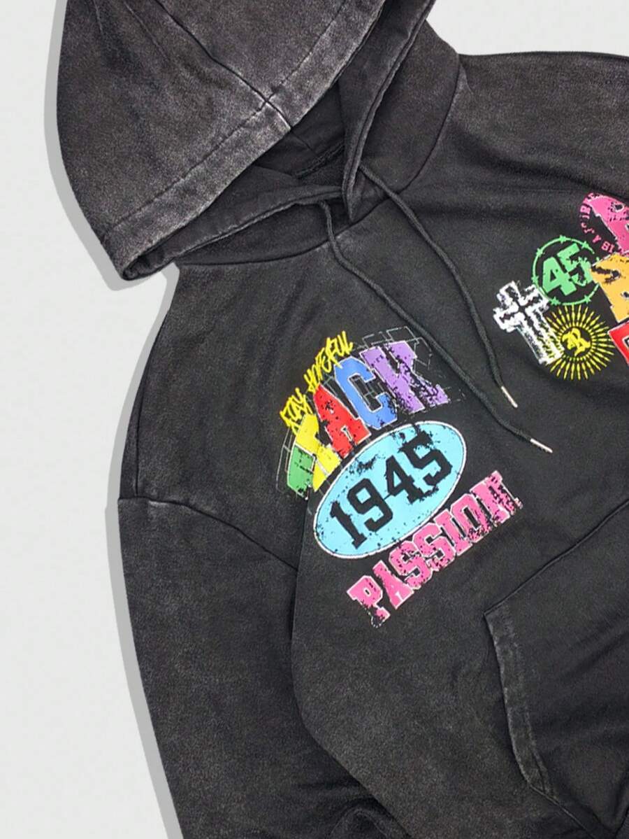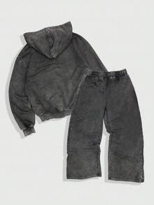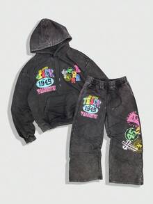 Street Life Conjunto de sudadera con capucha y pantalón de chándal con gráfico de letras casual para hombre, otoño