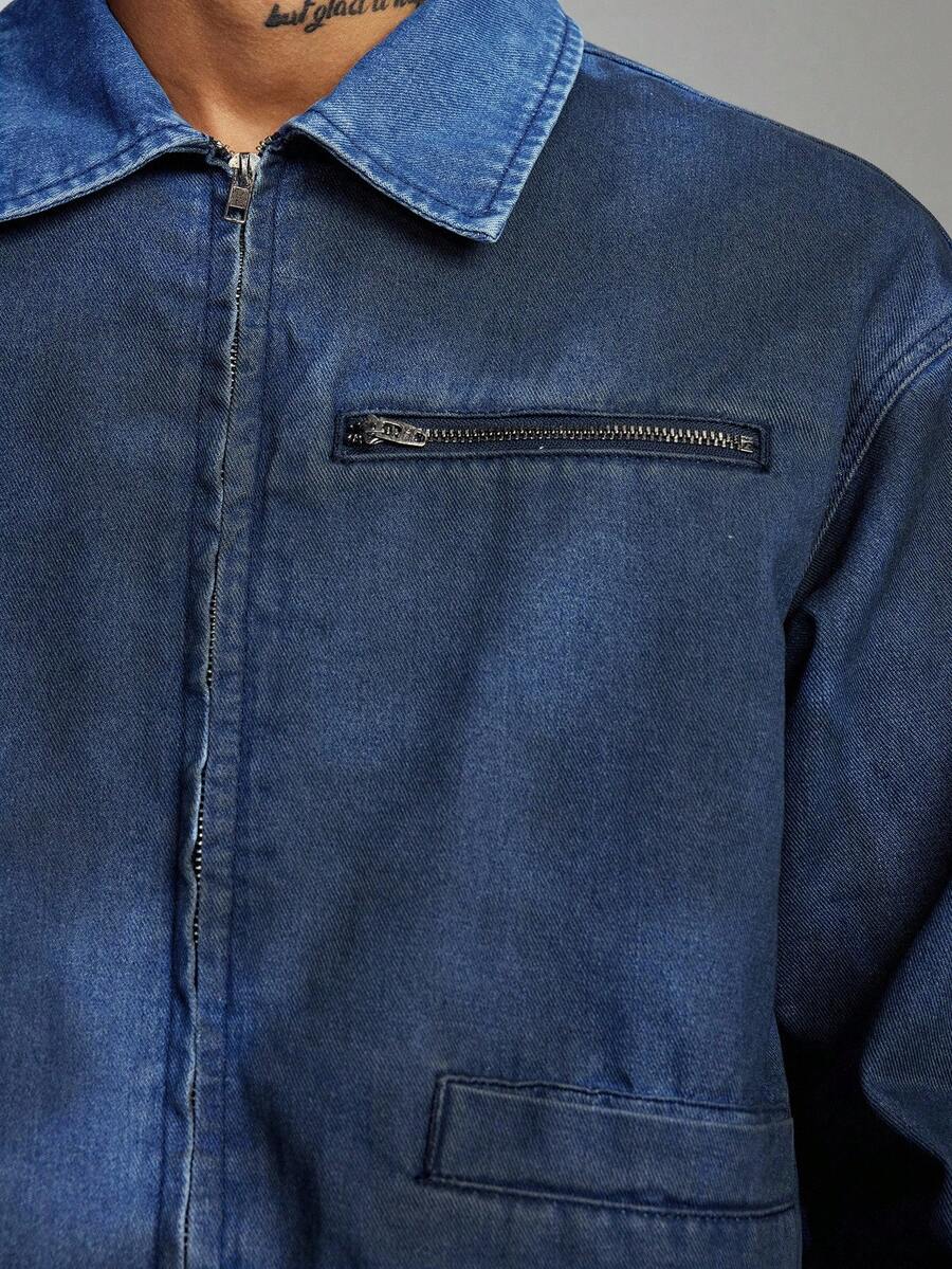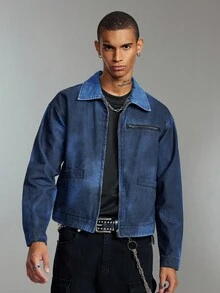 Street Life Chaqueta vaquera casual y holgada con cremallera delantera para hombre, otoño