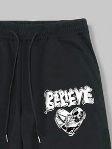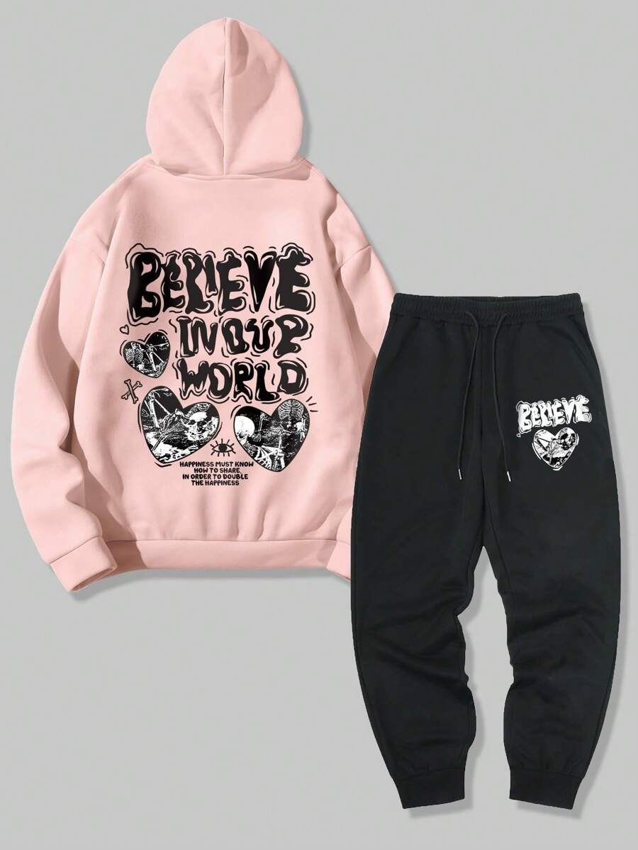 Street Life Conjunto Para Hombre De Sudadera Rosa Informal Con Estampado De Letras Y Pantalones Deportivos