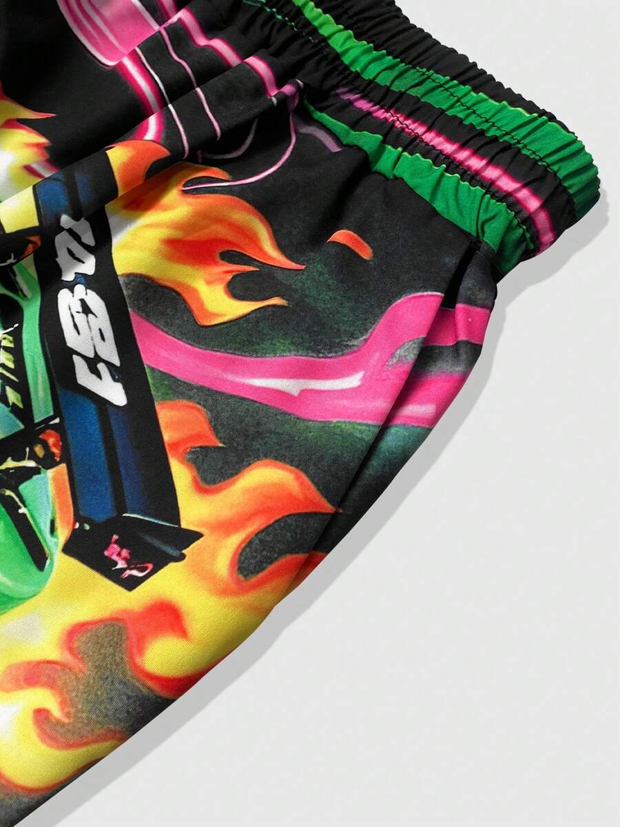 Street Life Pantalones cortos informales de verano con estampado de carreras para hombres