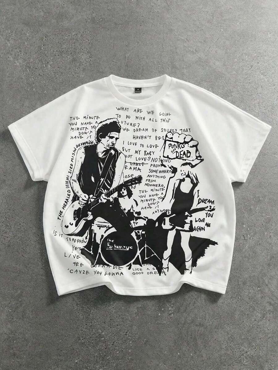 Street Life Camiseta de manga corta casual para hombres con figura dibujada a mano