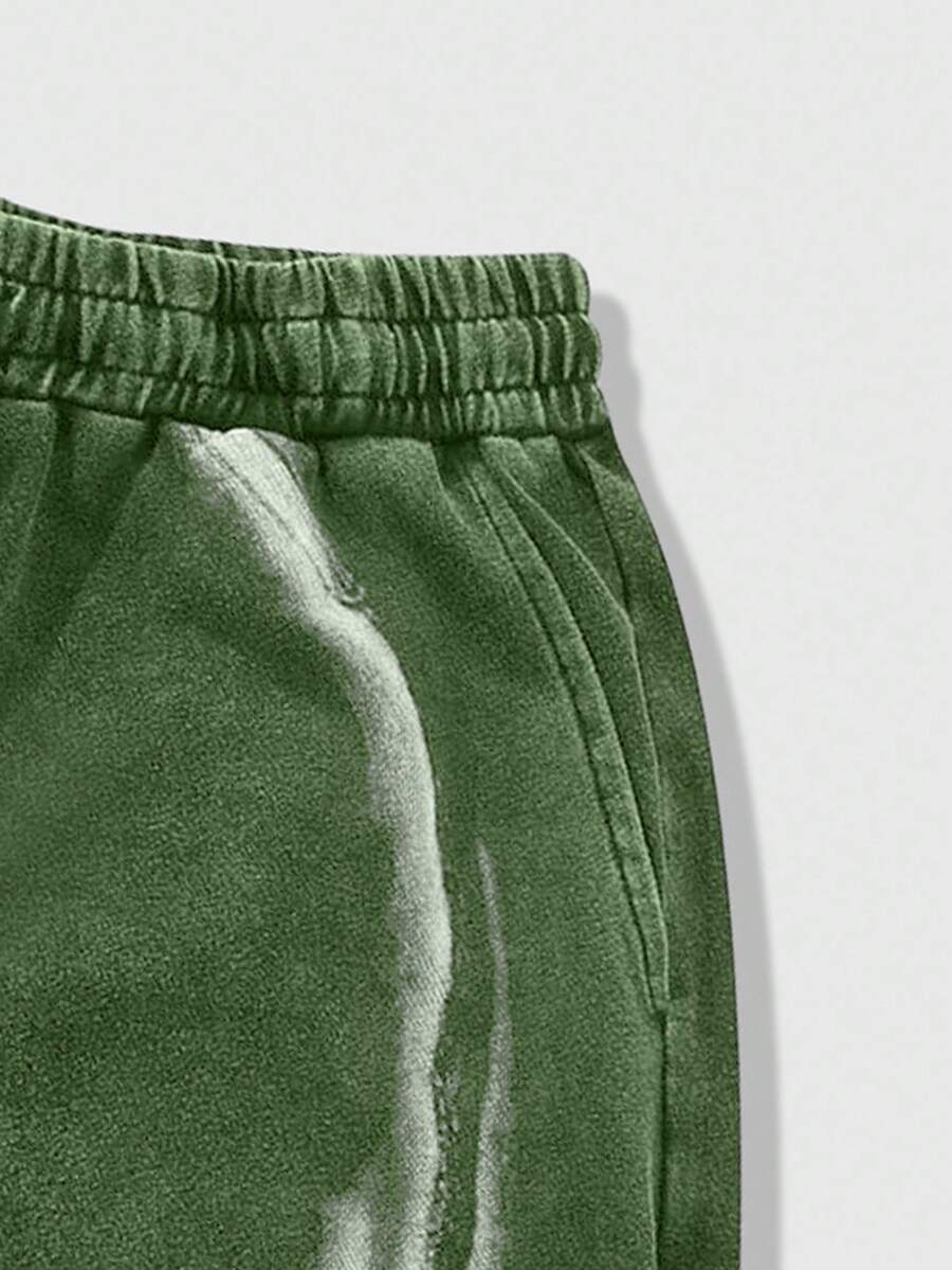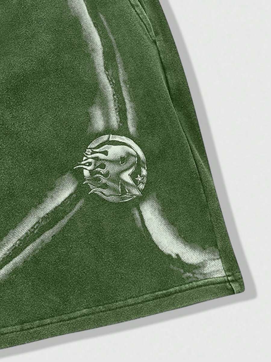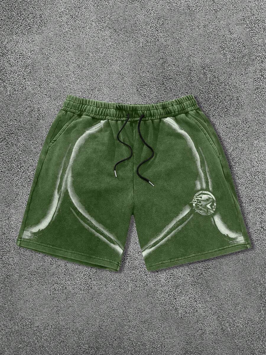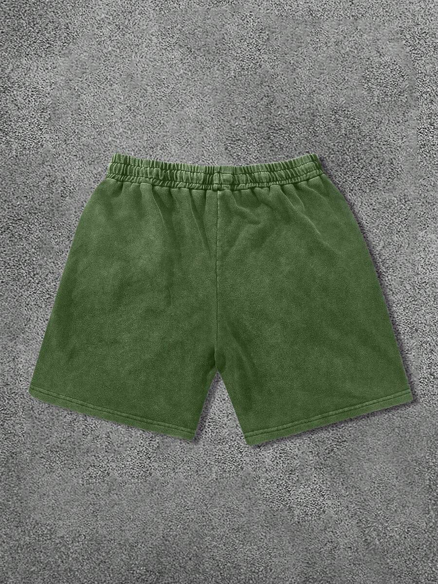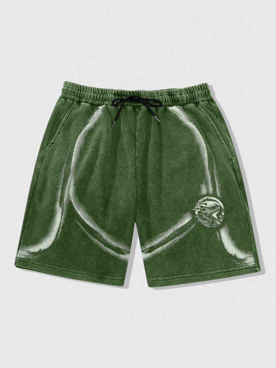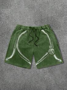 Street Life Pantalones cortos sueltos de verano para hombre con estampado de llama callejera, cintura con cordón desgastado y lavado
