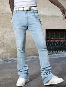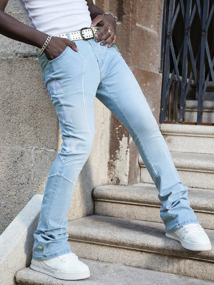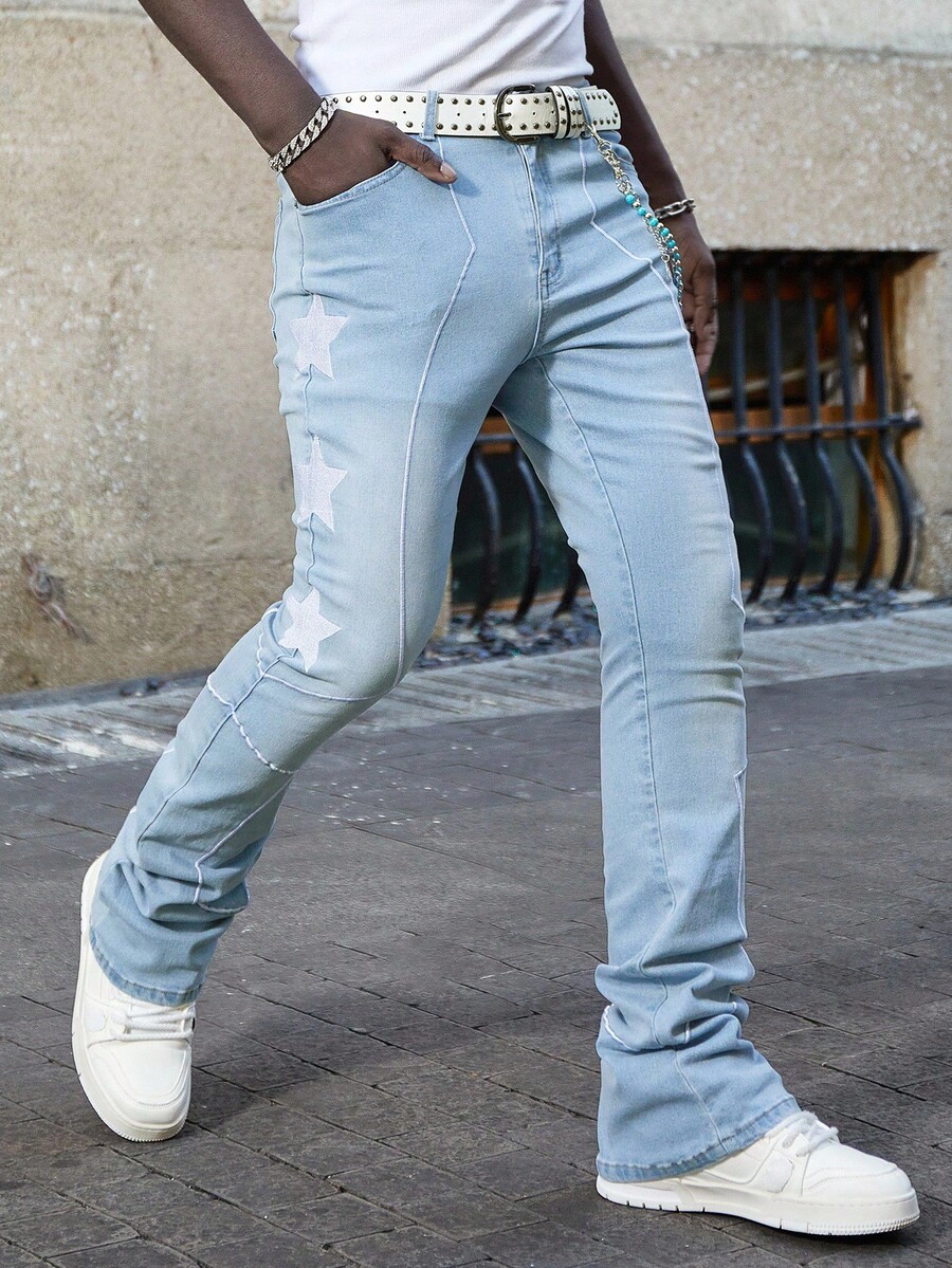 Street Life Jeans casuales para hombres con lavado y bordado de estrella, corte slim y acampanado