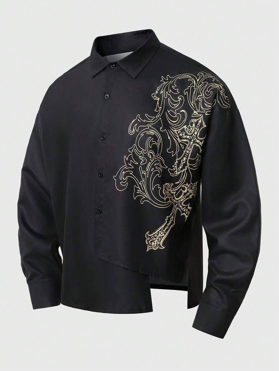 Street Life Camisa casual de manga larga con botones delanteros negra para hombre