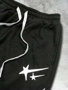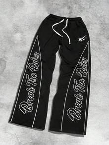 Street Life Pantalones de chándal casuales de corte recto y ajuste holgado con cintura elástica y cordón, estampados, para estilo de calle
