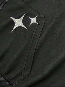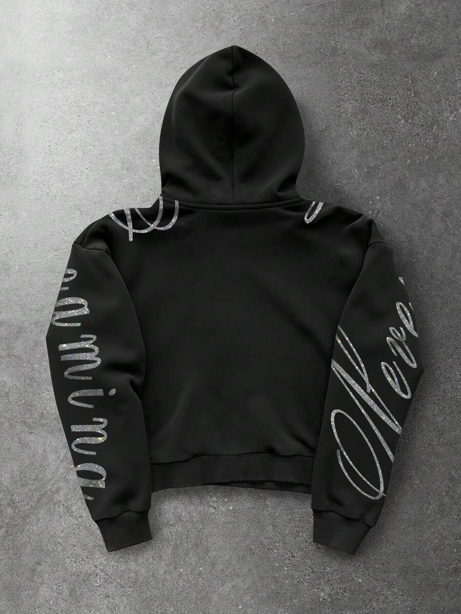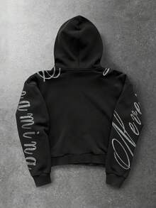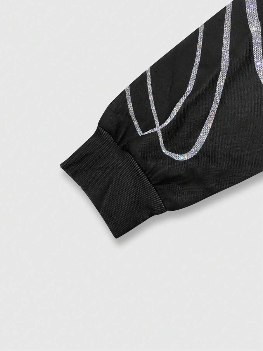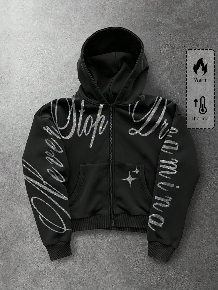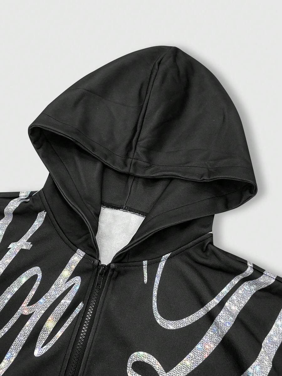 Street Life Sudadera con capucha de forro polar con cremallera, estampado de letras con rhinestones, estilo casual y urbano para hombres, otoño/invierno