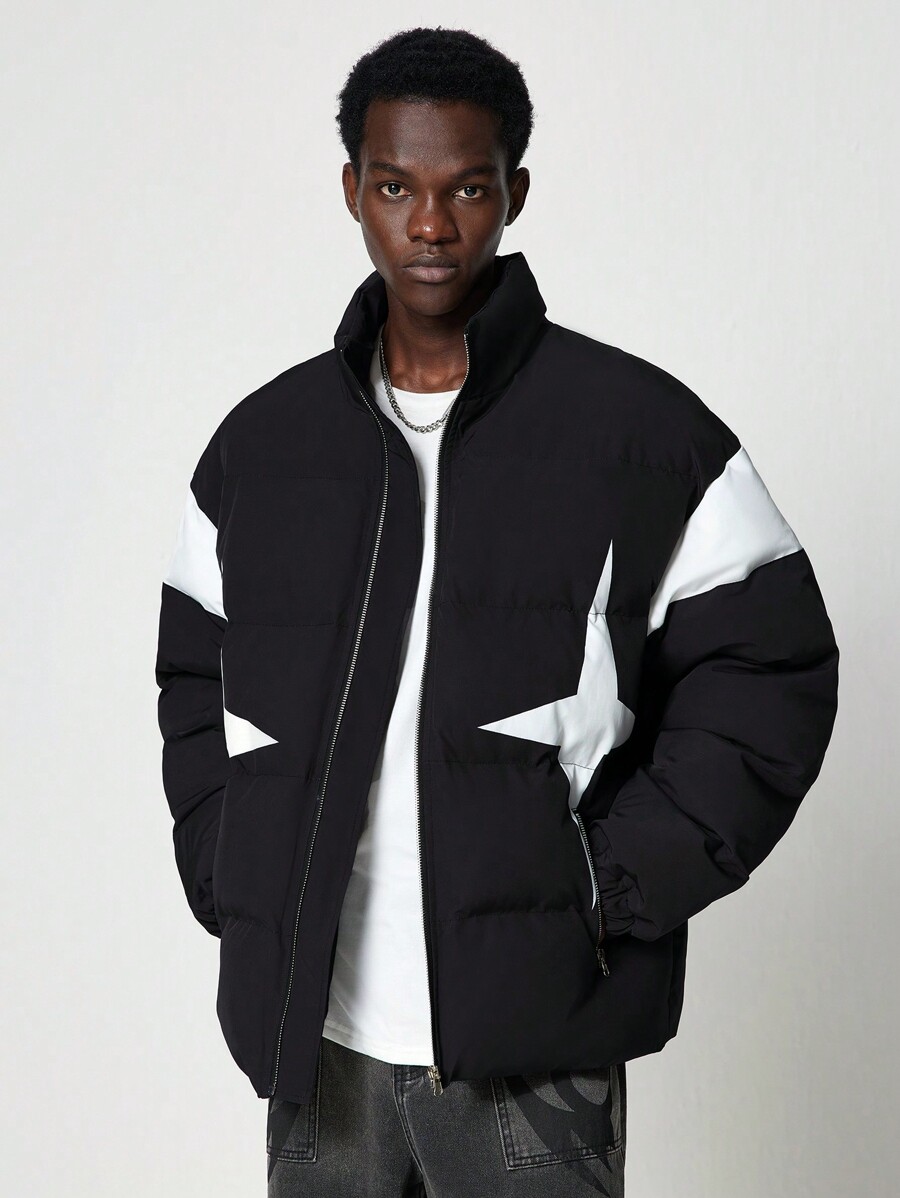 Street Life Abrigo casual acolchado con bolsillo con cremallera y estampado de figura para hombre, para uso diario