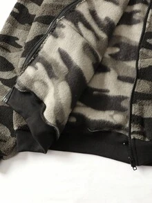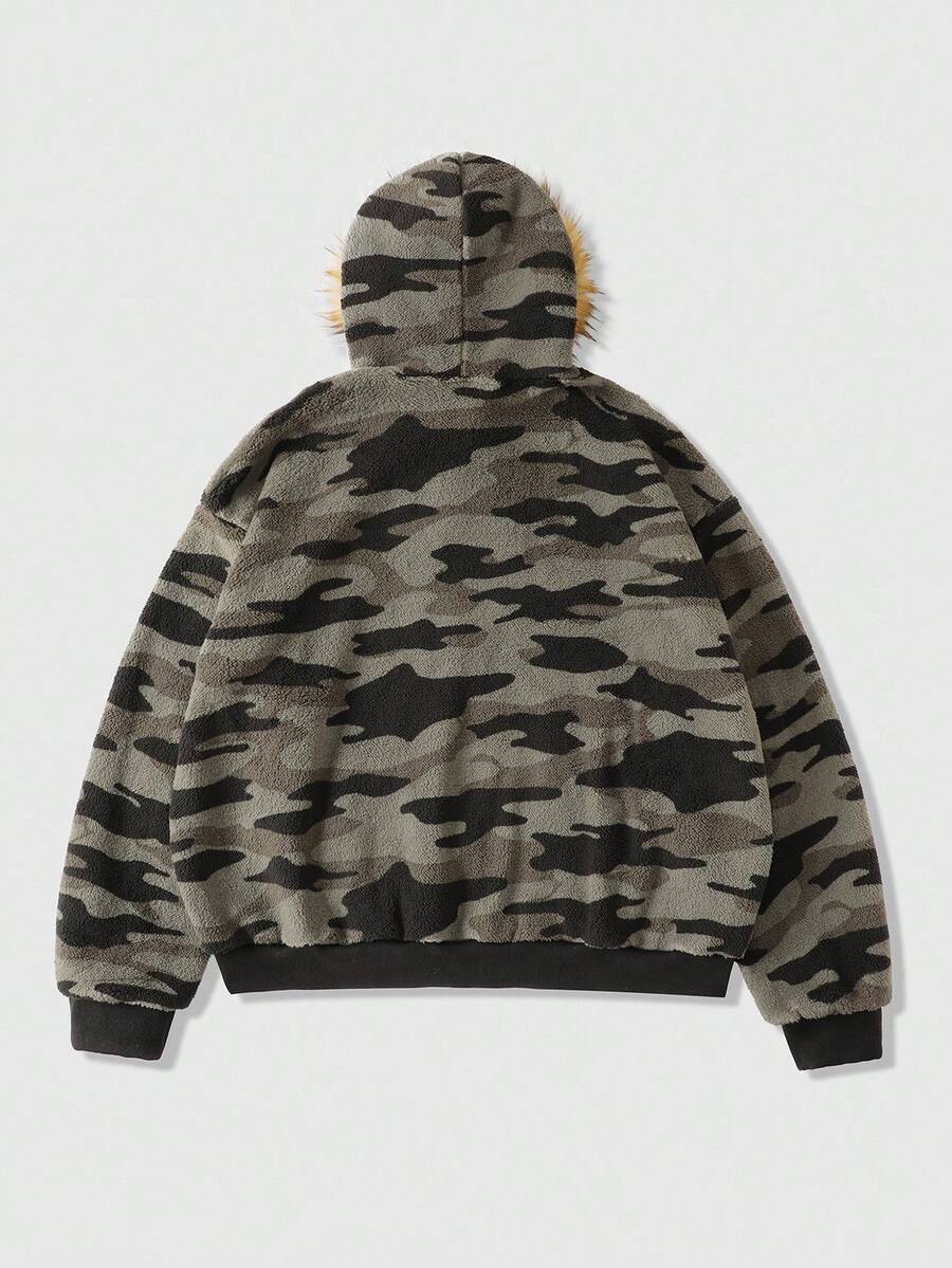 Street Life Sudadera con capucha holgada de camuflaje con cuello esponjoso, estilo callejero retro, para otoño e invierno