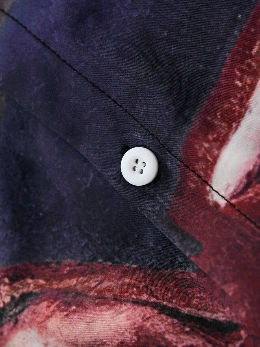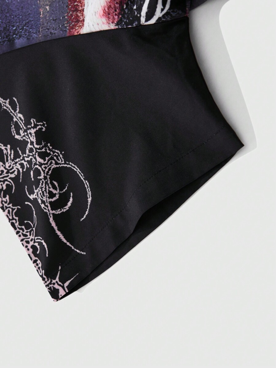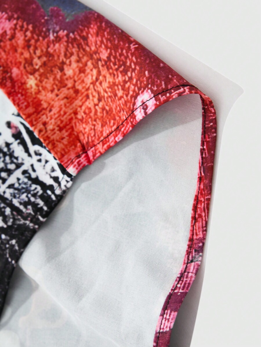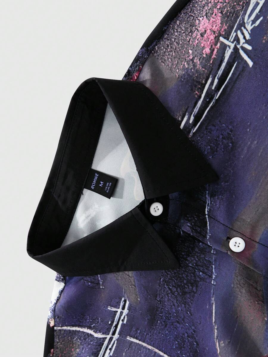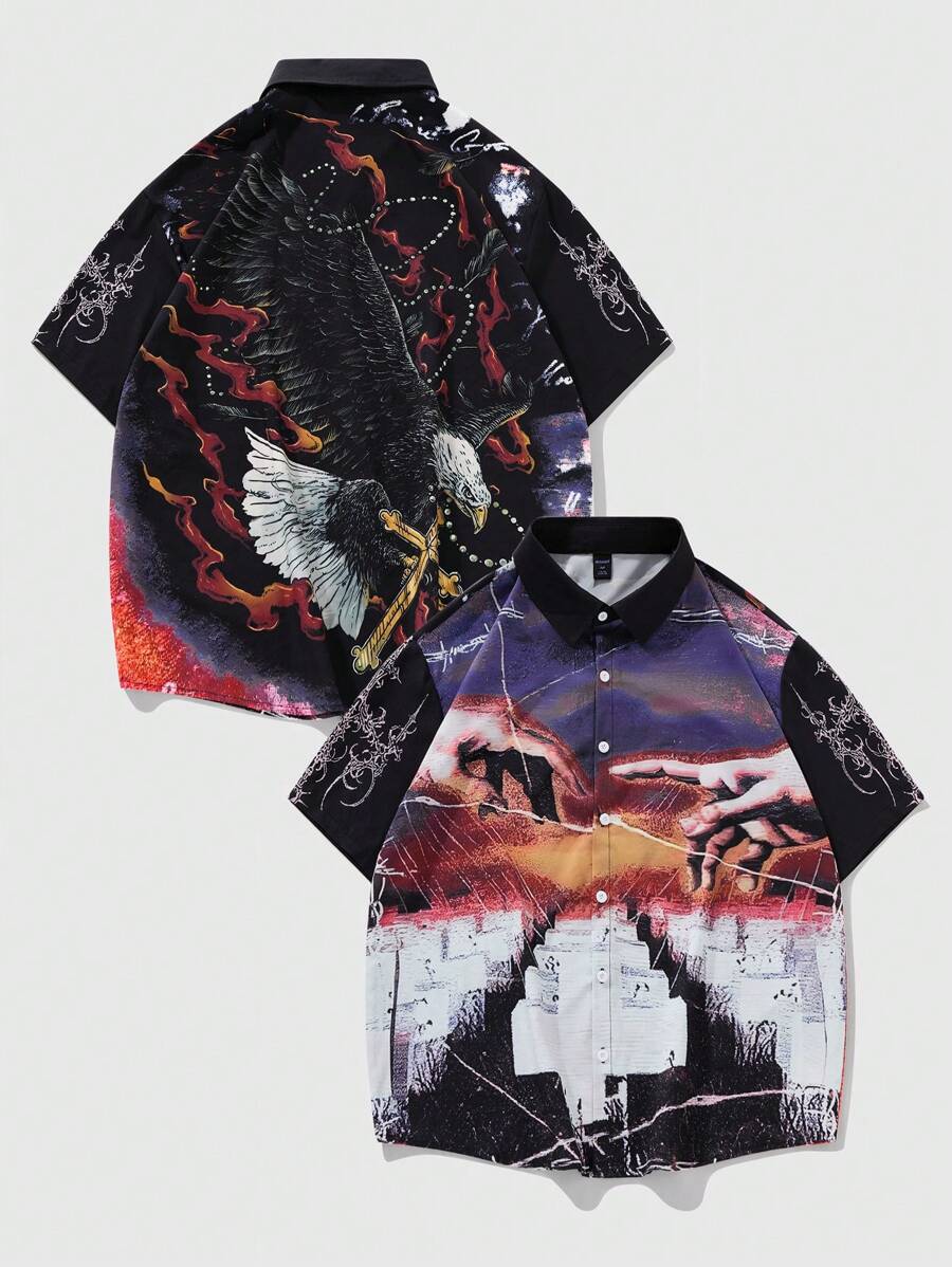 Street Life Camisa casual de manga corta y de un solo pecho con estampado de gesto de mano para hombre