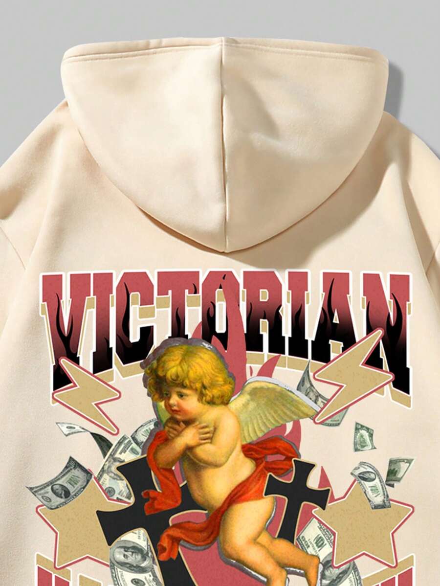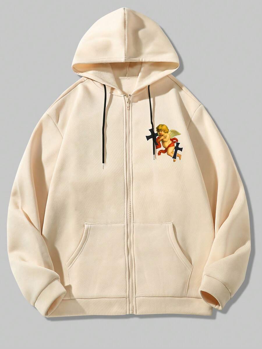Street Life Sudadera Con Capucha Y Cremallera Para Hombre Con Impresión De Ángel Y Palabra