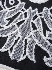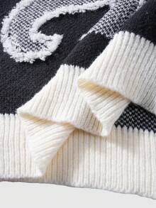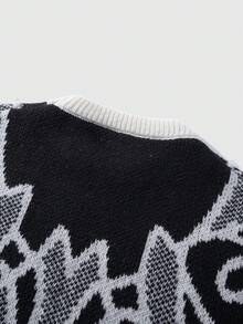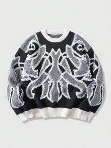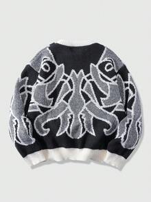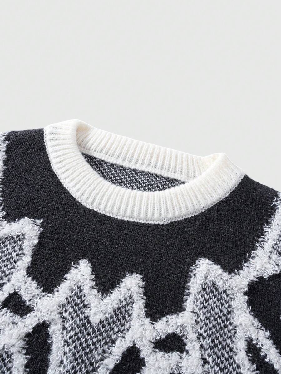 Street Life Jersey de cuello redondo casual de punto jacquard con ajuste holgado y manga larga para hombre