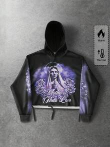 Street Life Sudadera con capucha con estampado gráfico de letras y retratos para hombres