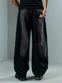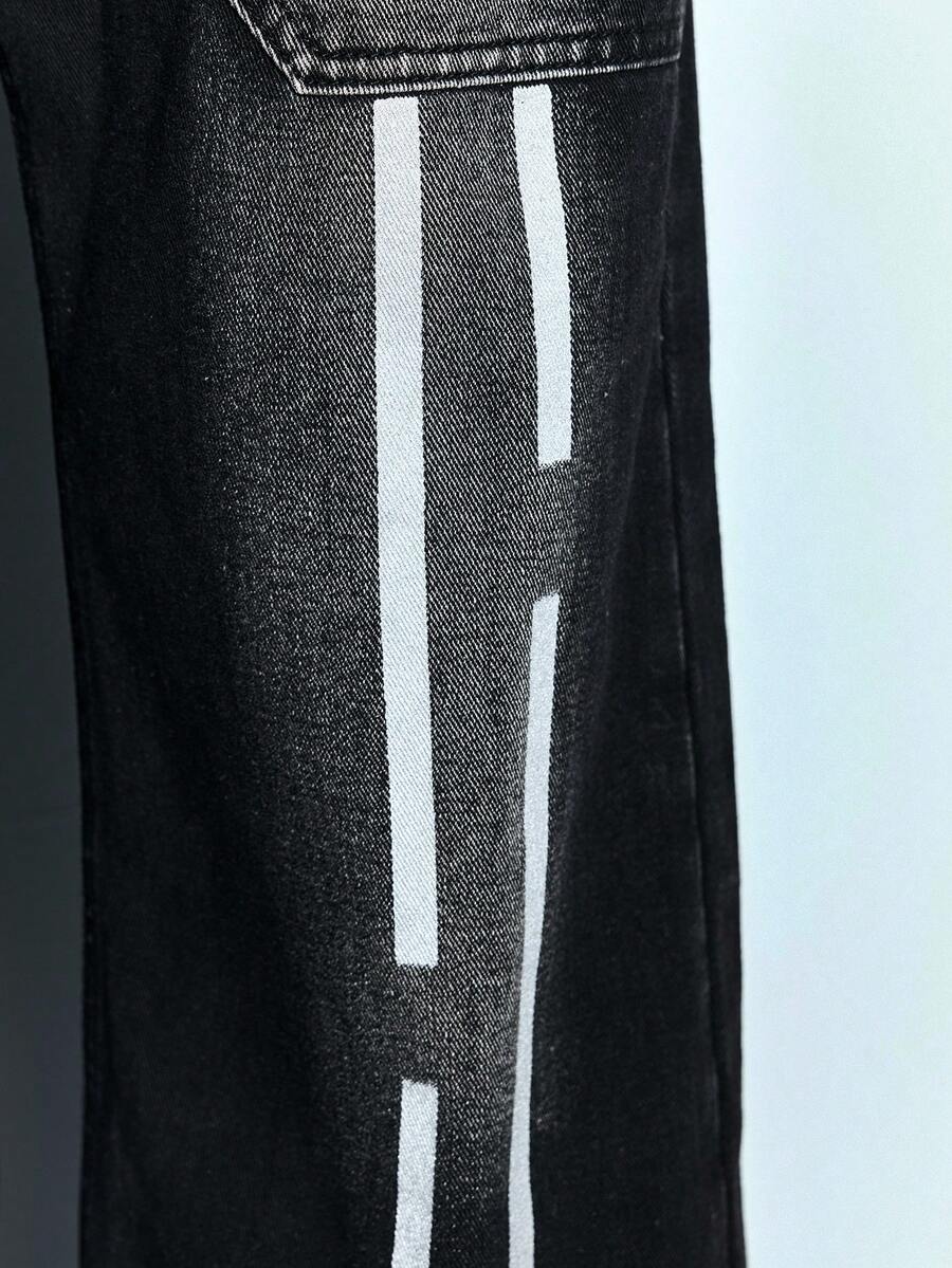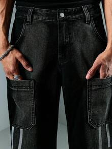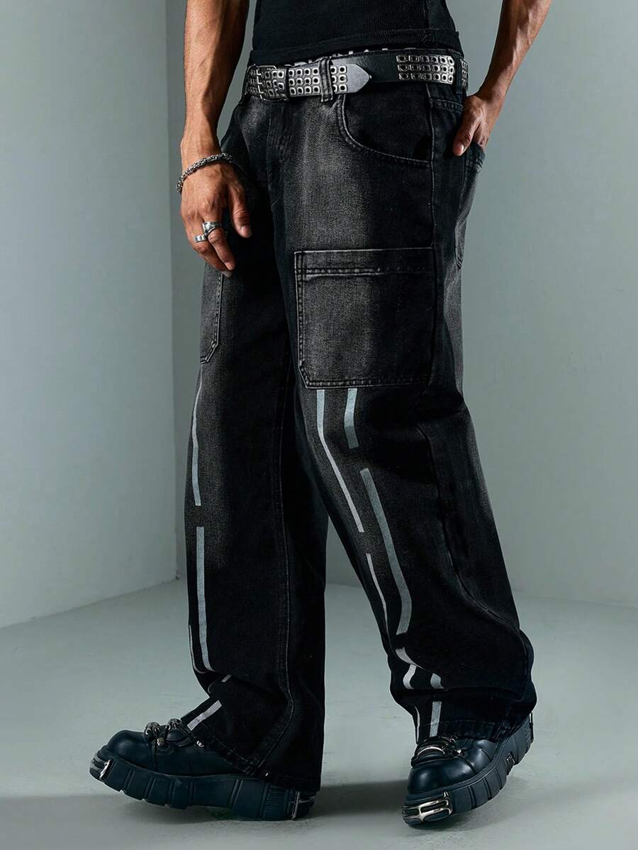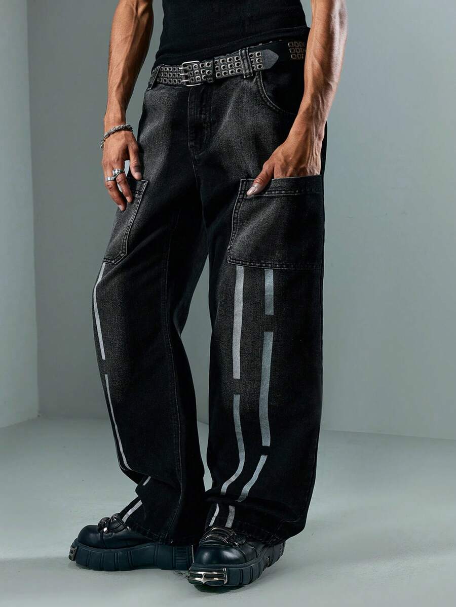 Street Life Jeans casuales de pierna ancha y ajuste holgado con rayas y bolsillos dobles para hombres