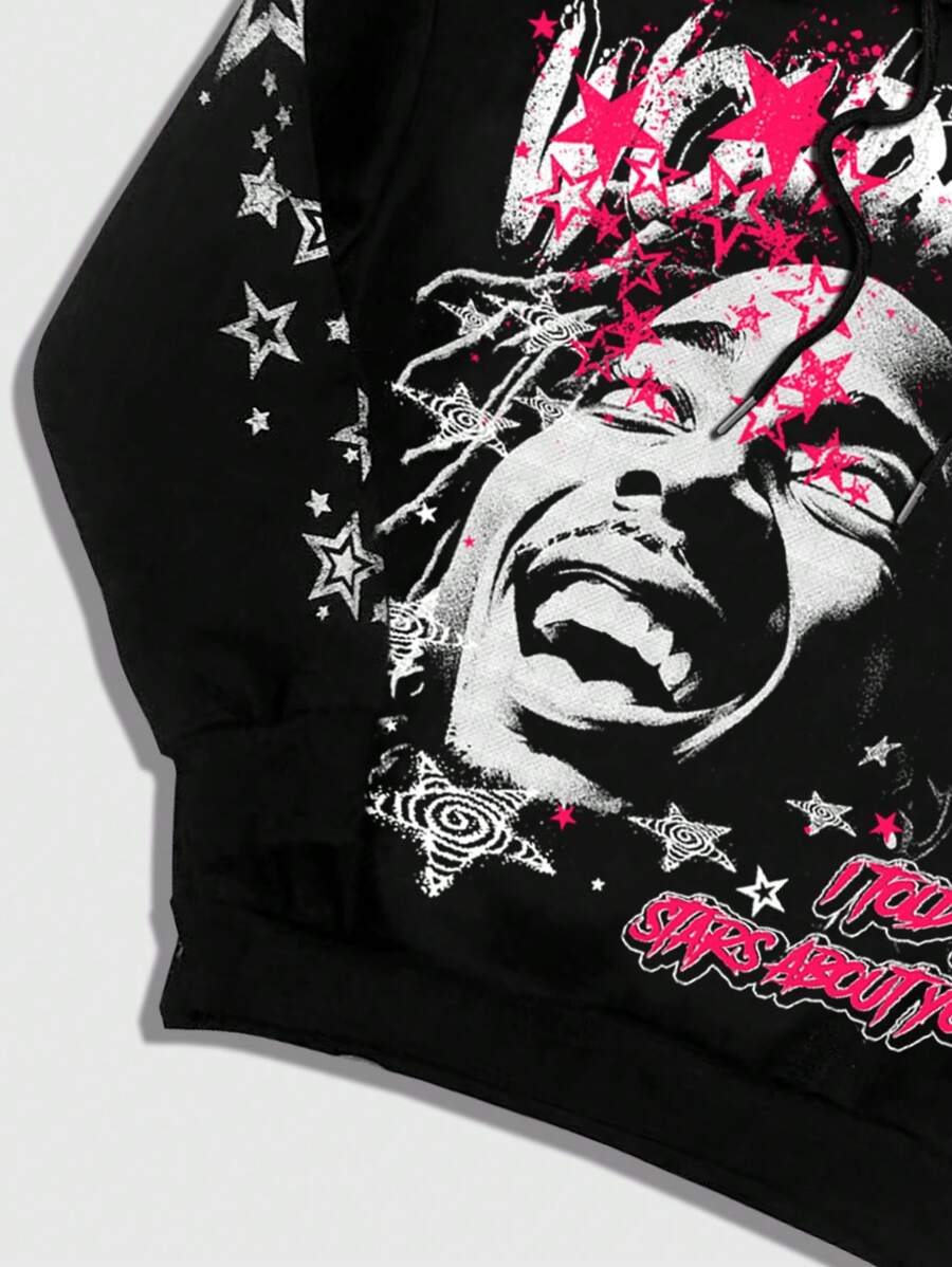 Street Life Sudadera con capucha casual y suelta con cierre de cremallera y estampado de retrato para hombre, uso diario