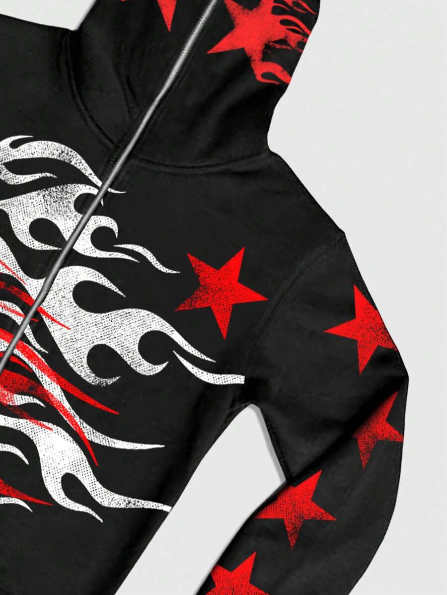 Street Life Sudadera con capucha con cremallera y estampado de retrato de hombre y estrella