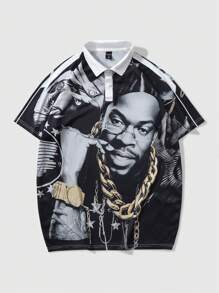 Street Life Camiseta polo casual de manga corta estampada para hombres, adecuada para primavera y verano, escuela